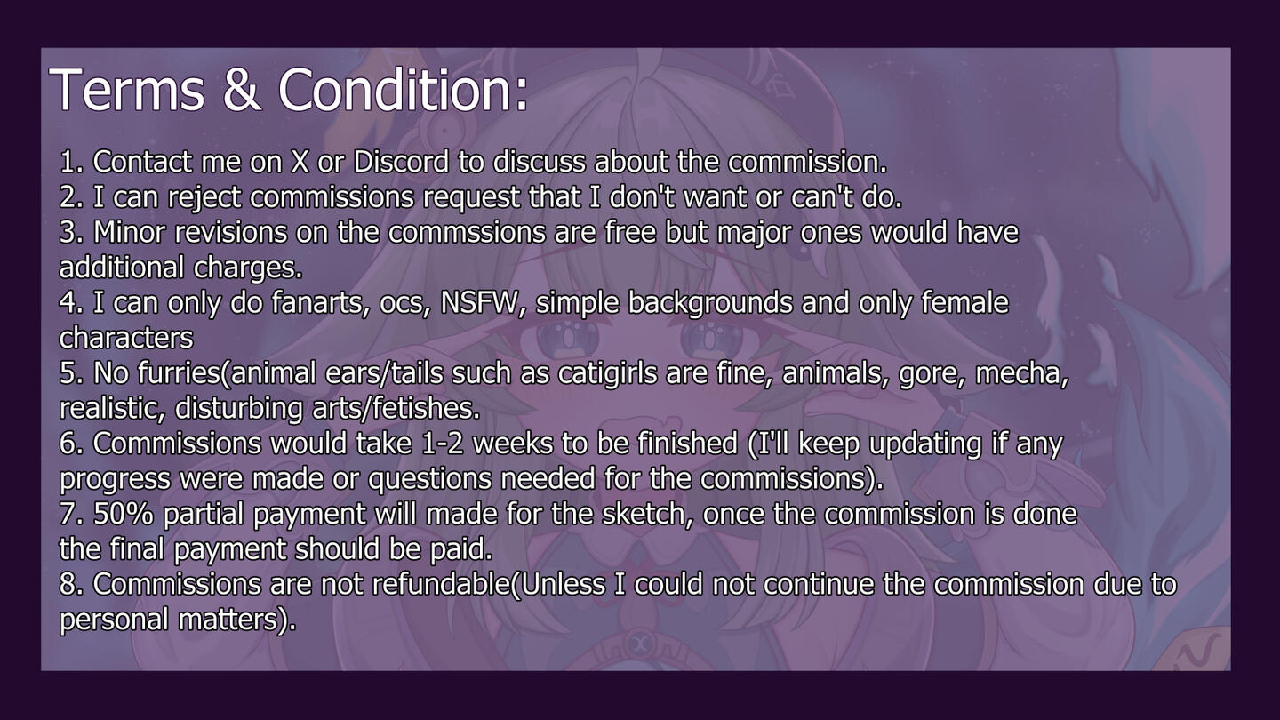Hello I'm Tadayoshidraws, if you click on this site it means you might be interested on getting commissions. Feel free to check the information and dm me on the socials below.